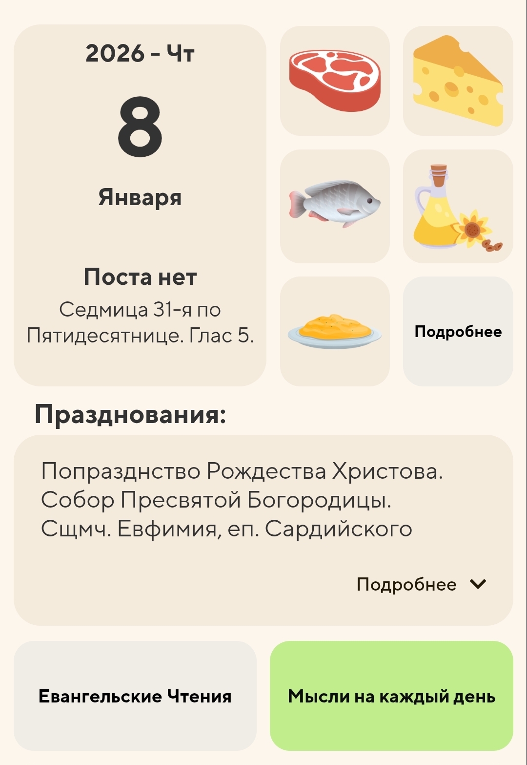 Праздники, посты, жития святых и многое другое.